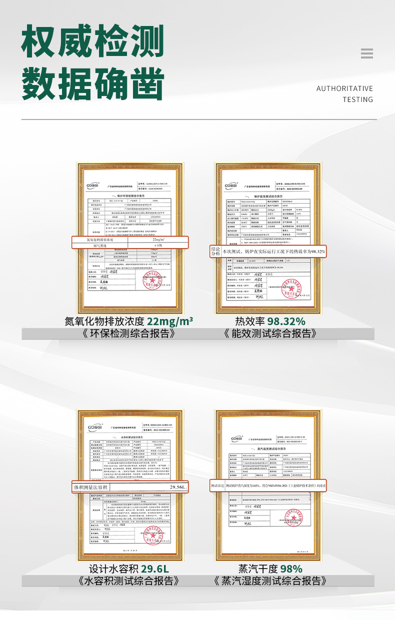 特 色:每產一蒸噸蒸汽僅需72m3天然氣、無內膽,水容積<29L、產汽快、免報檢,低氮燃燒NOx排放<22mg/m3,符合環(huán)保要求